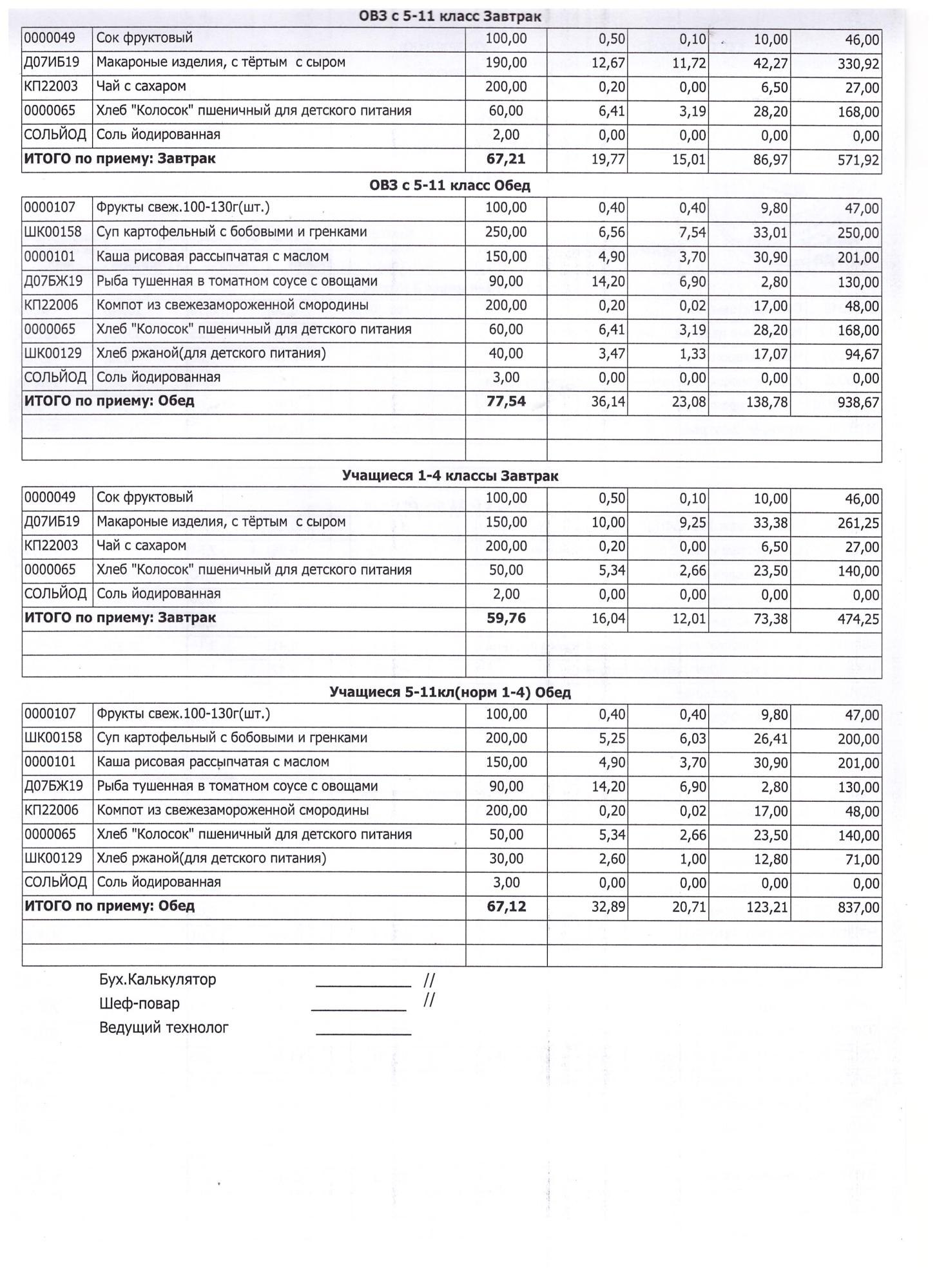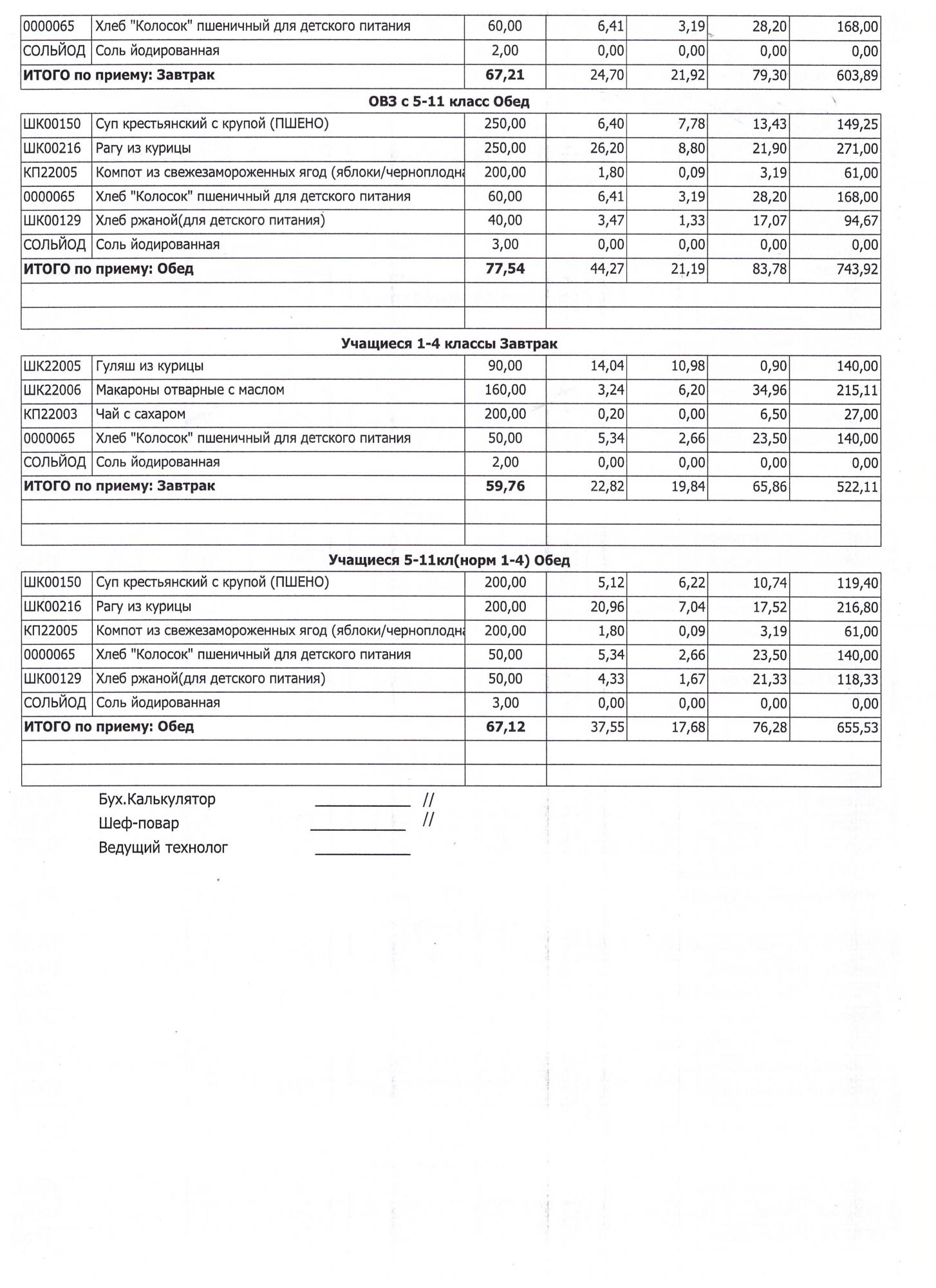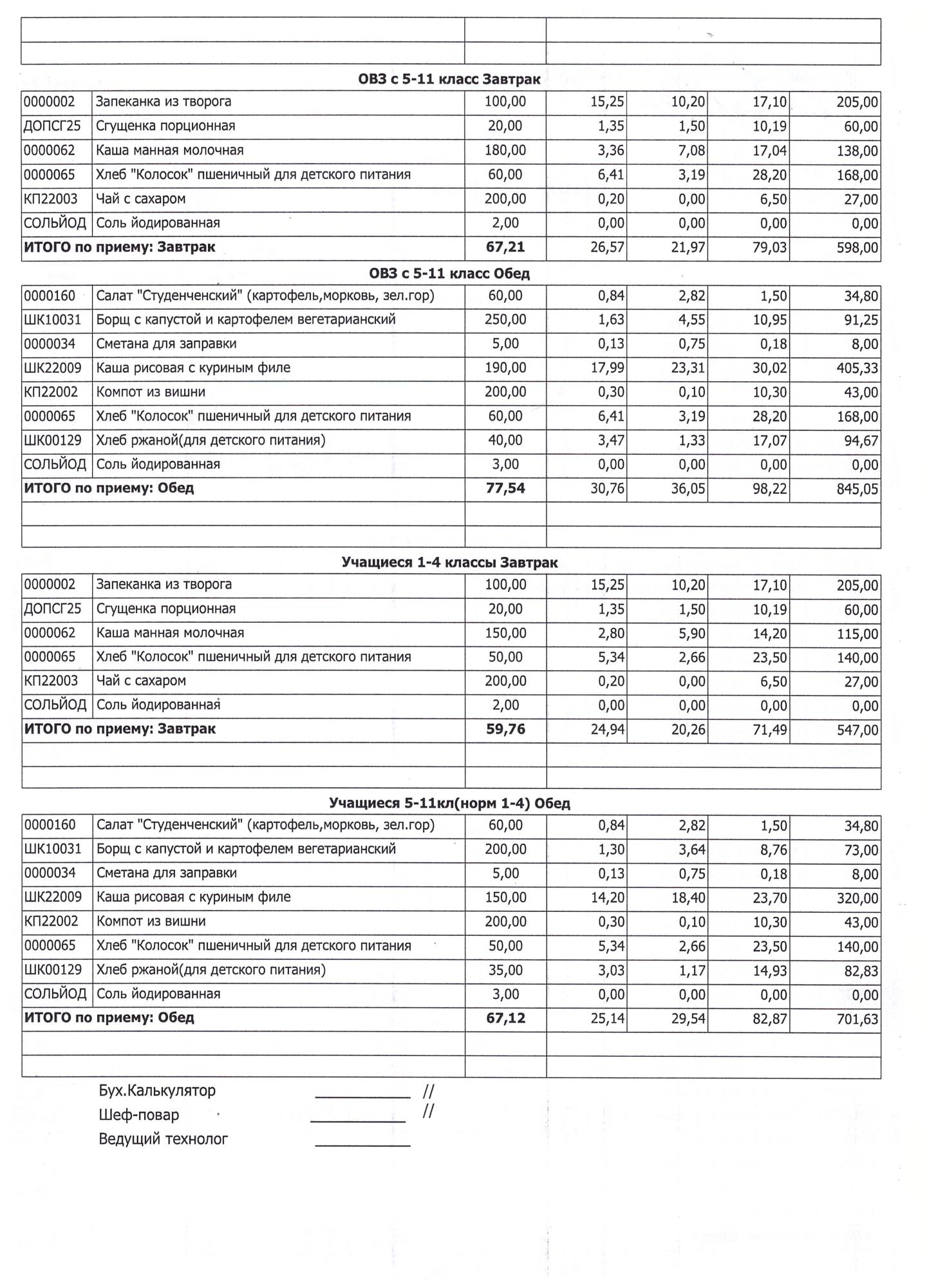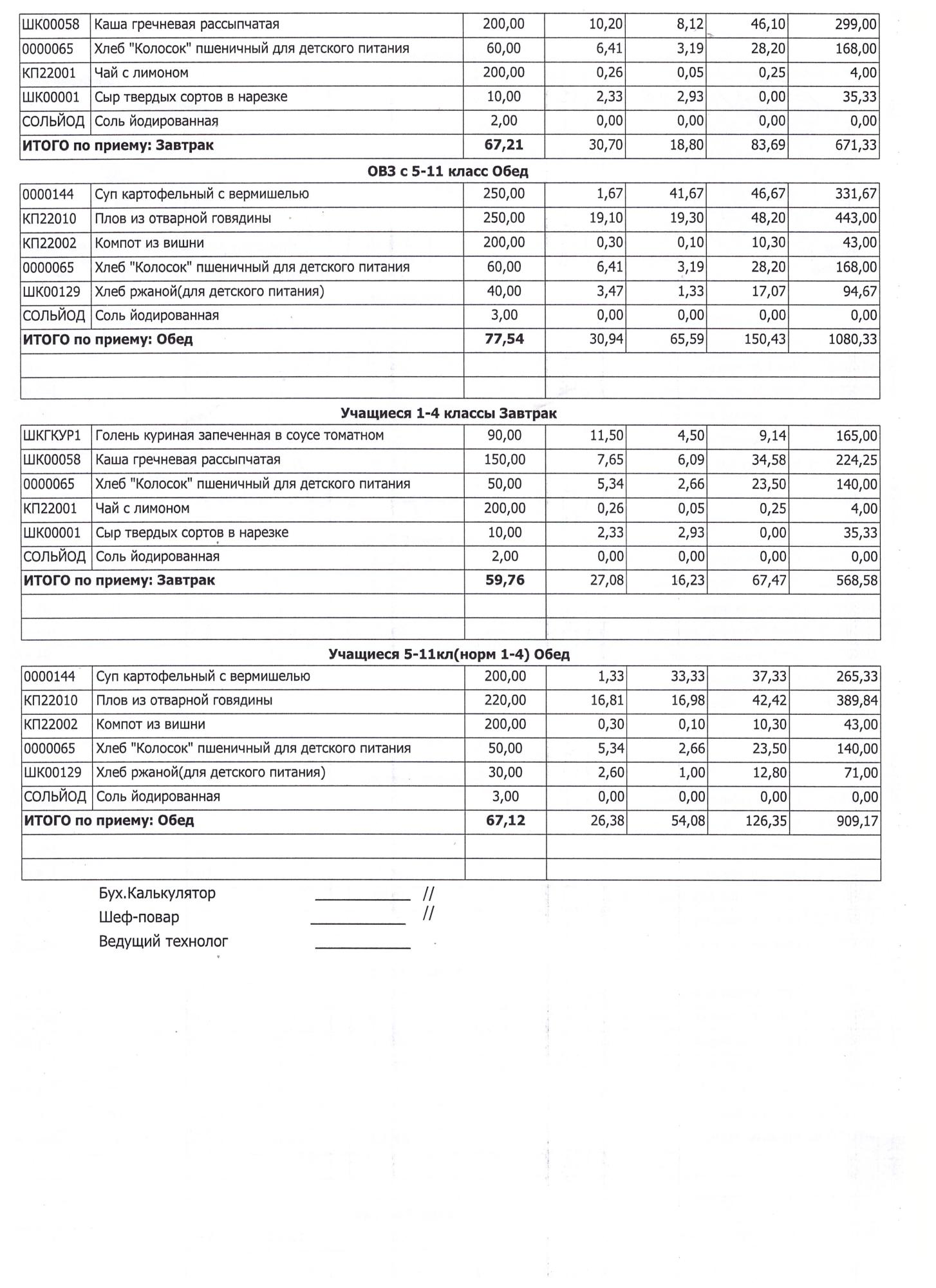 (Завтрак 1-4 классы)