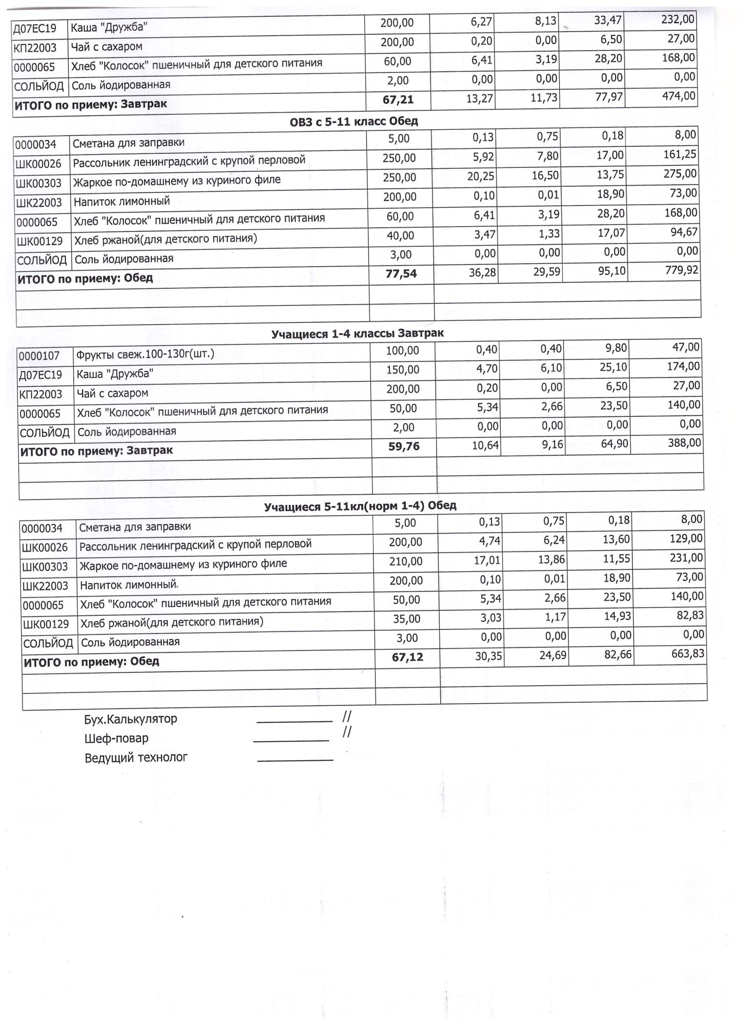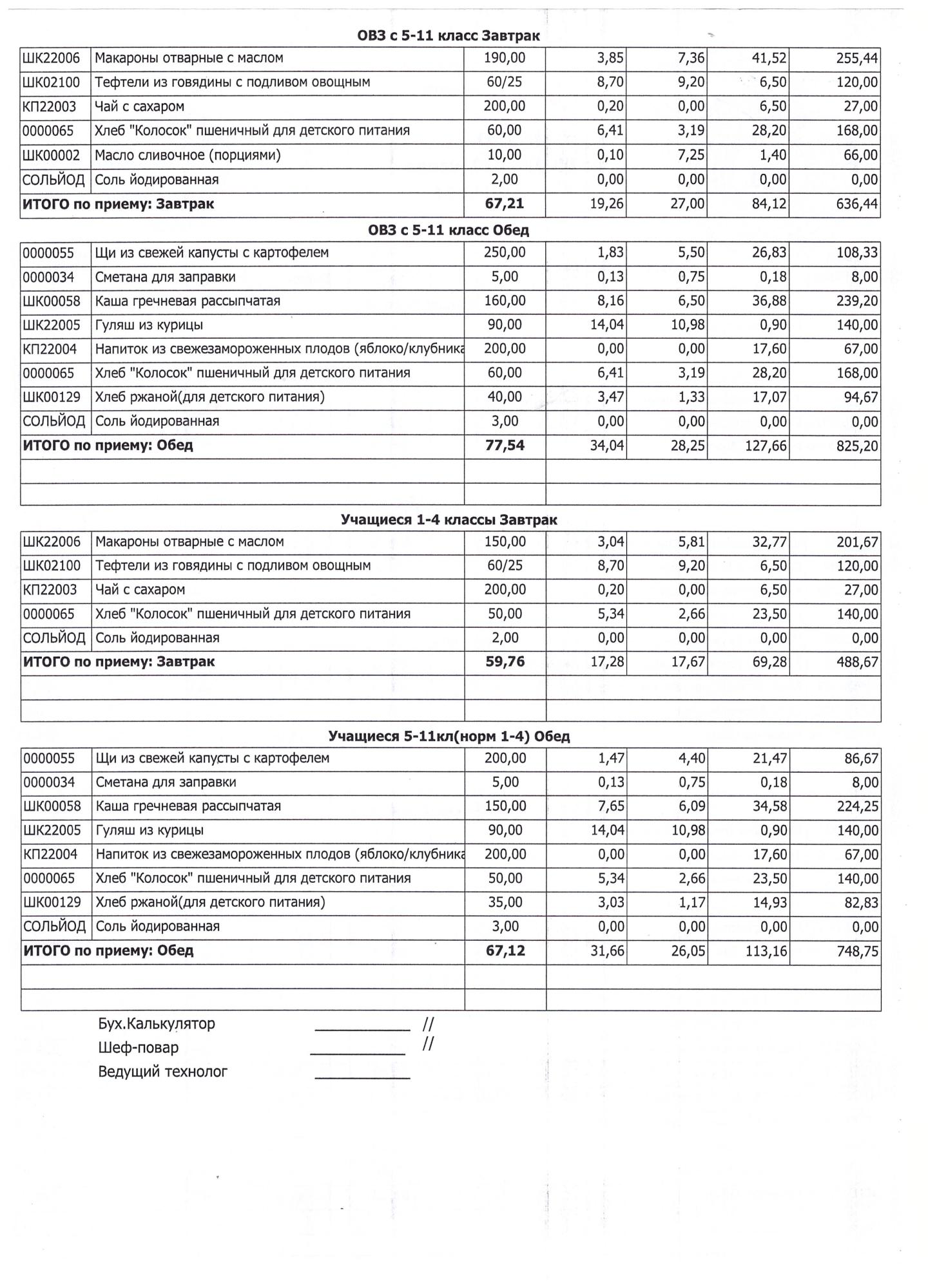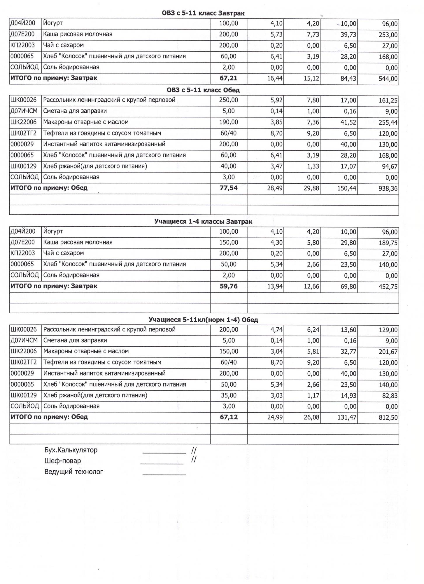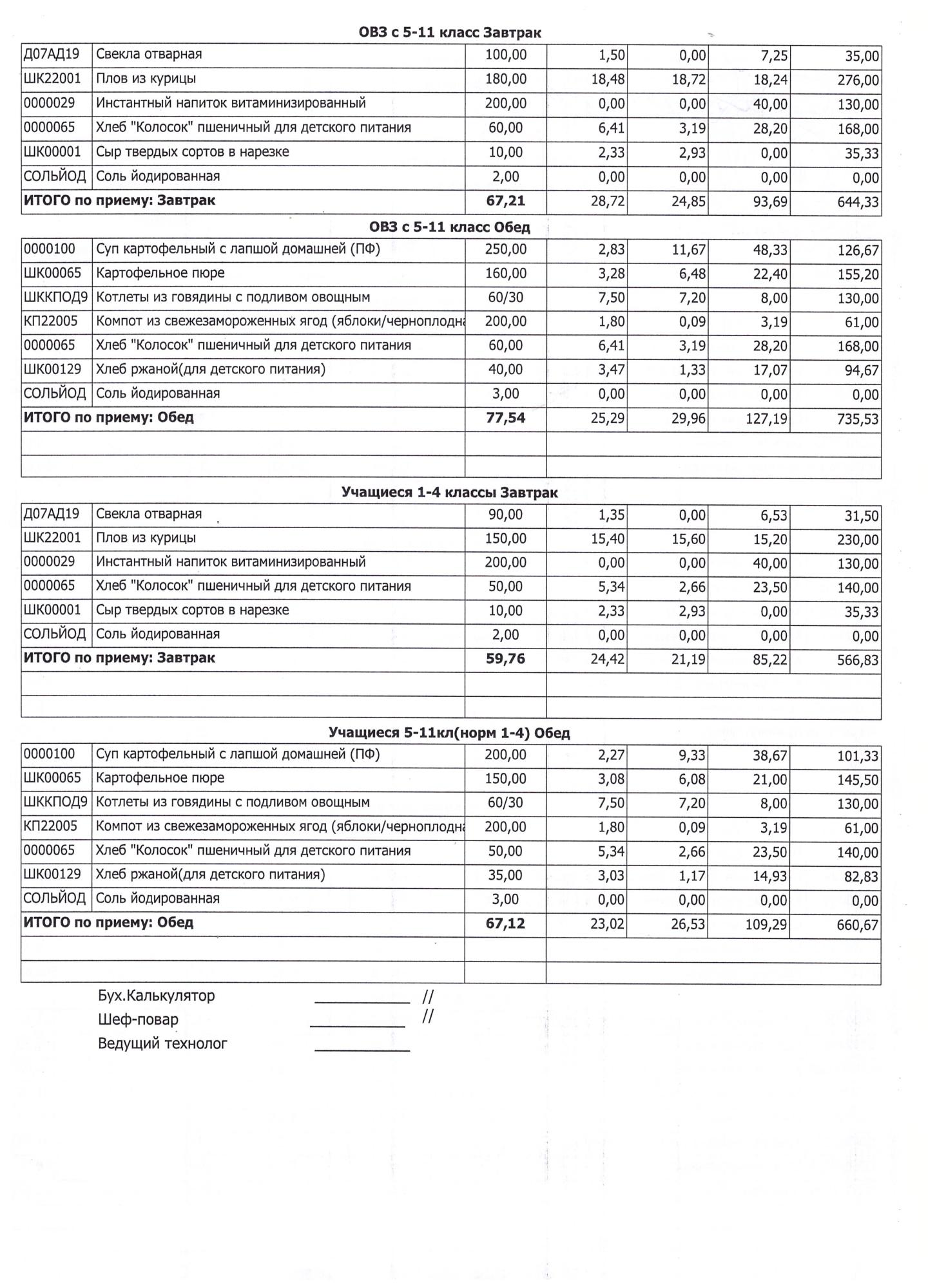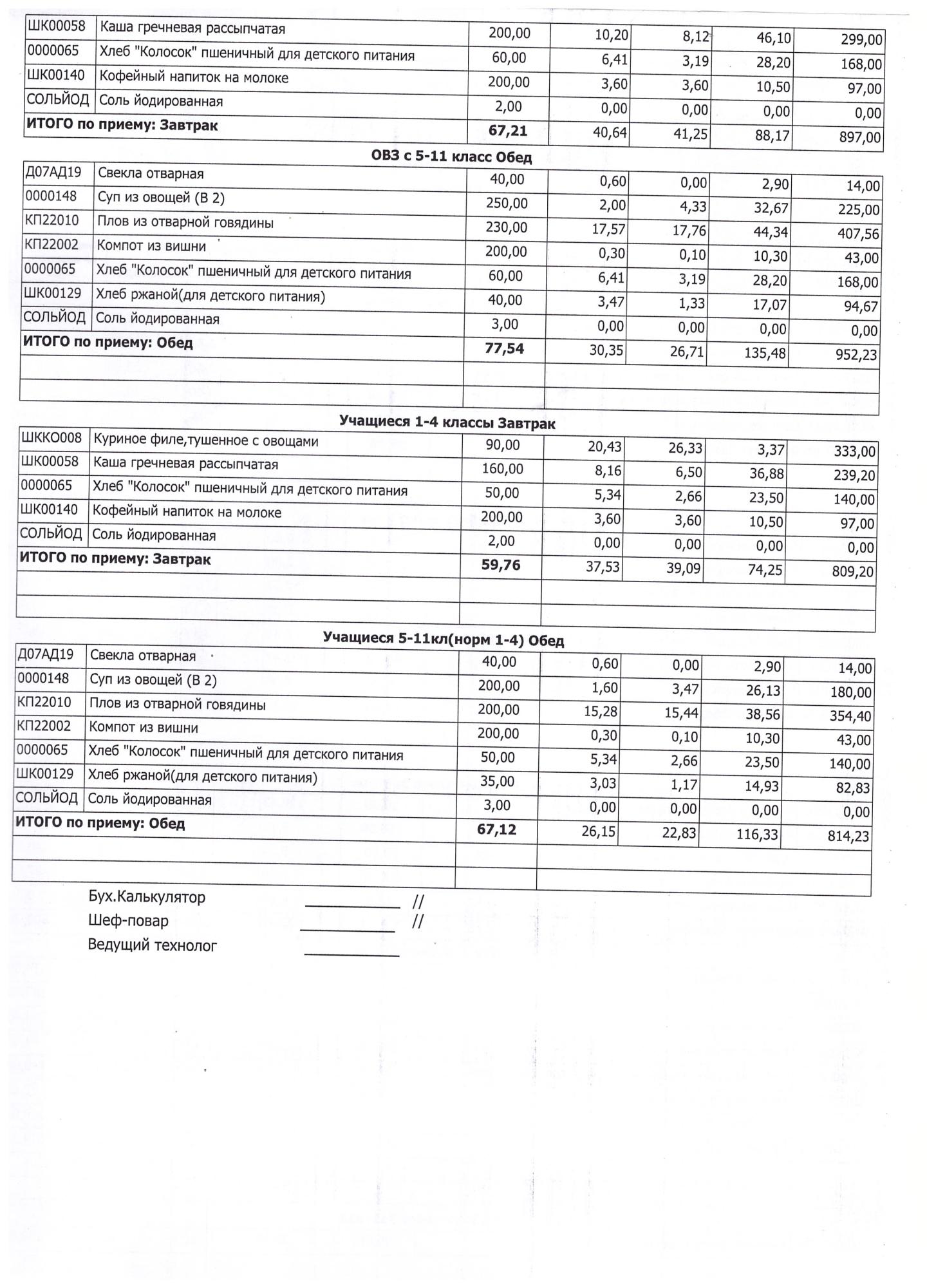 (Завтрак 1-4 классы)