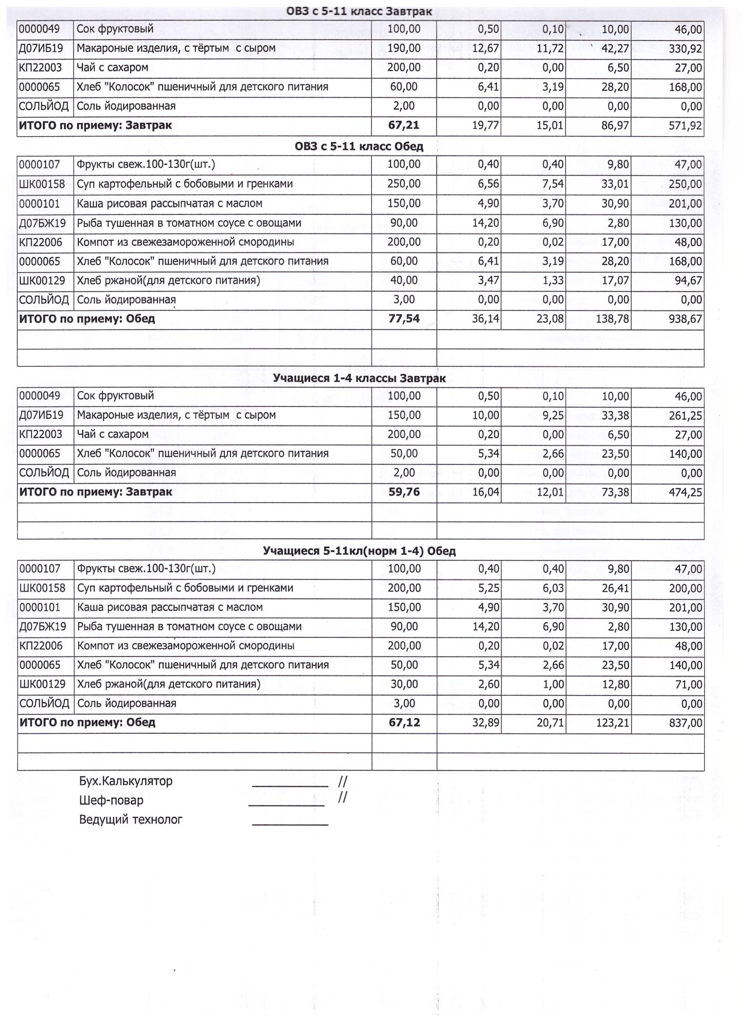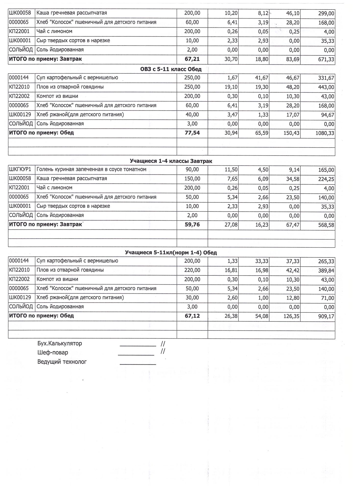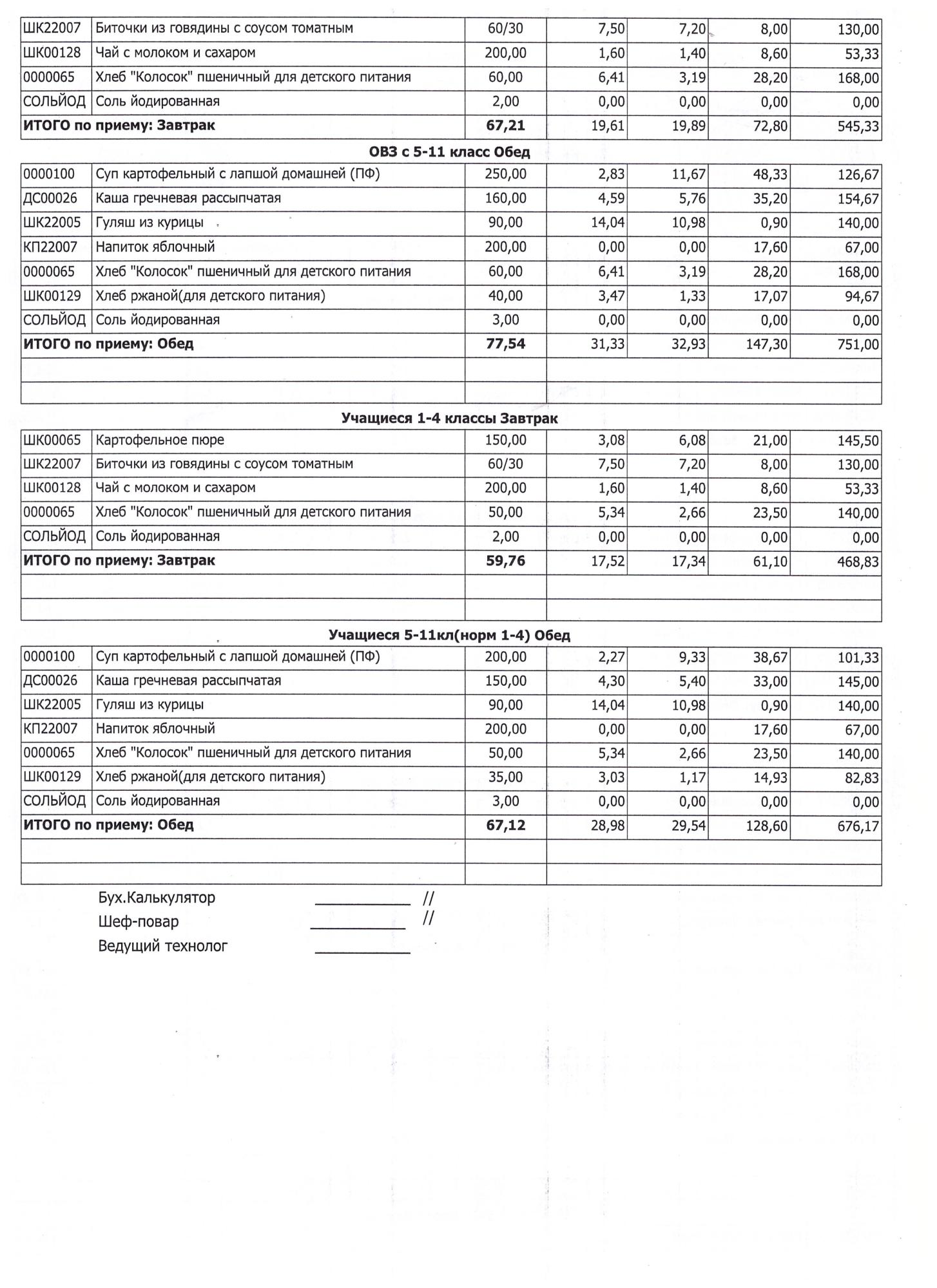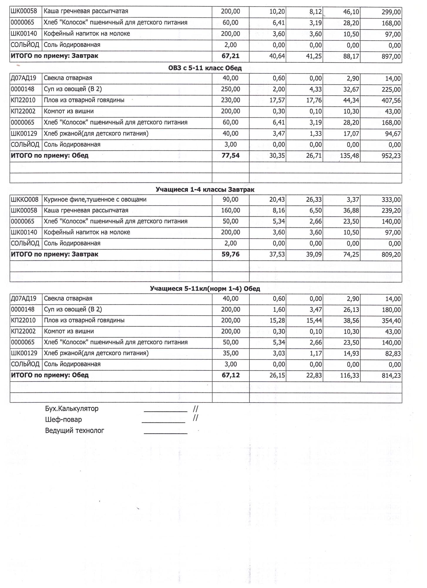 (Завтрак 1-4 классы)