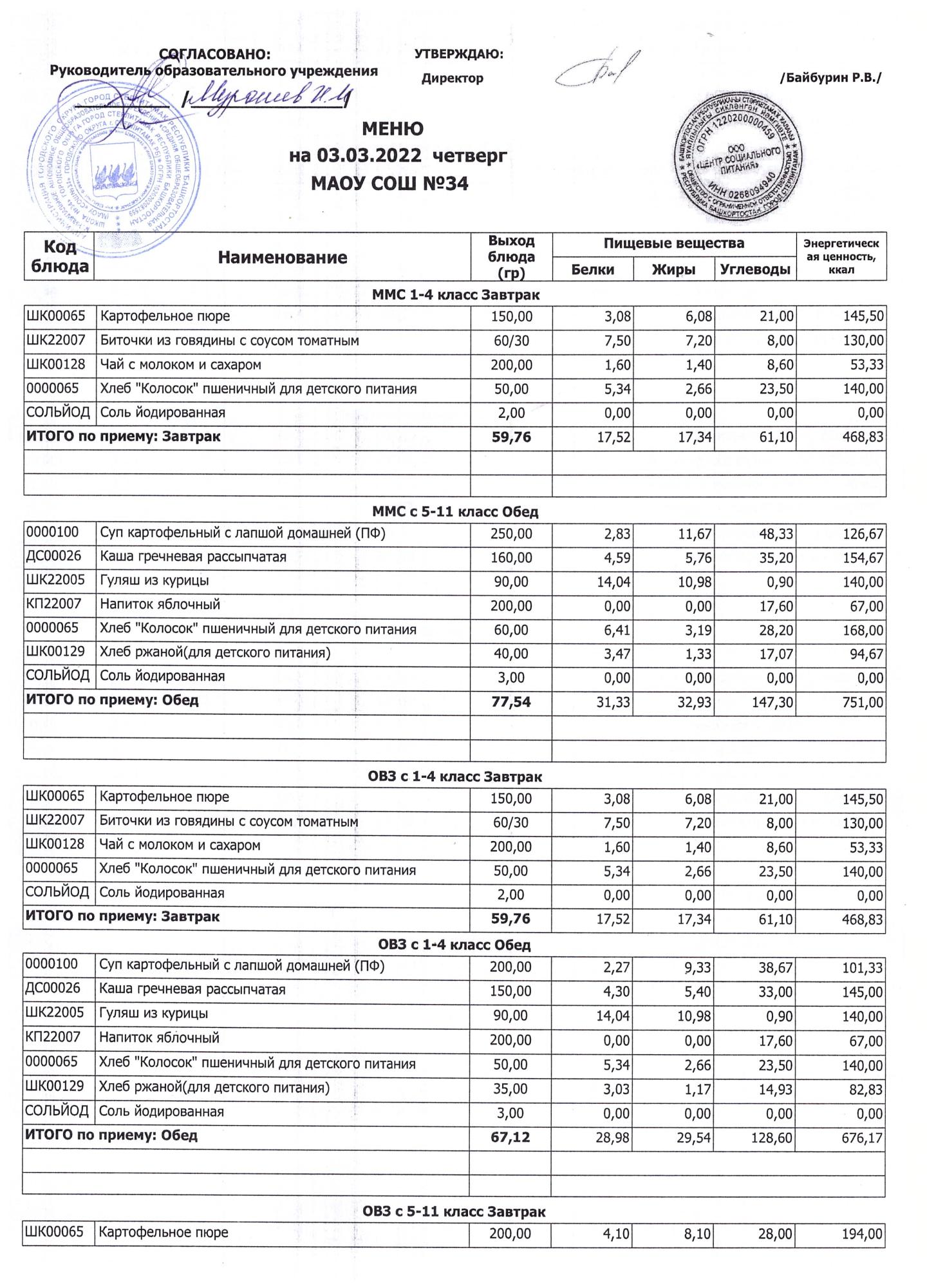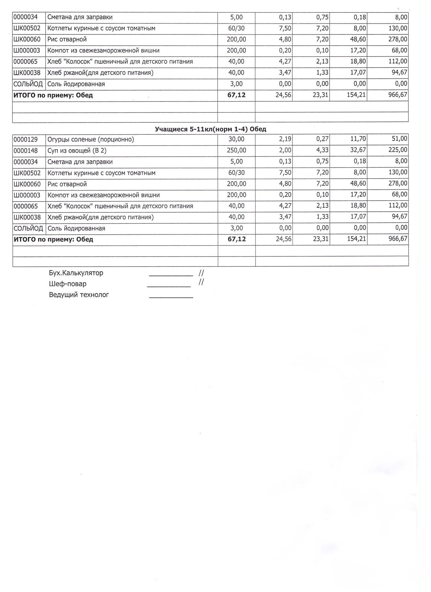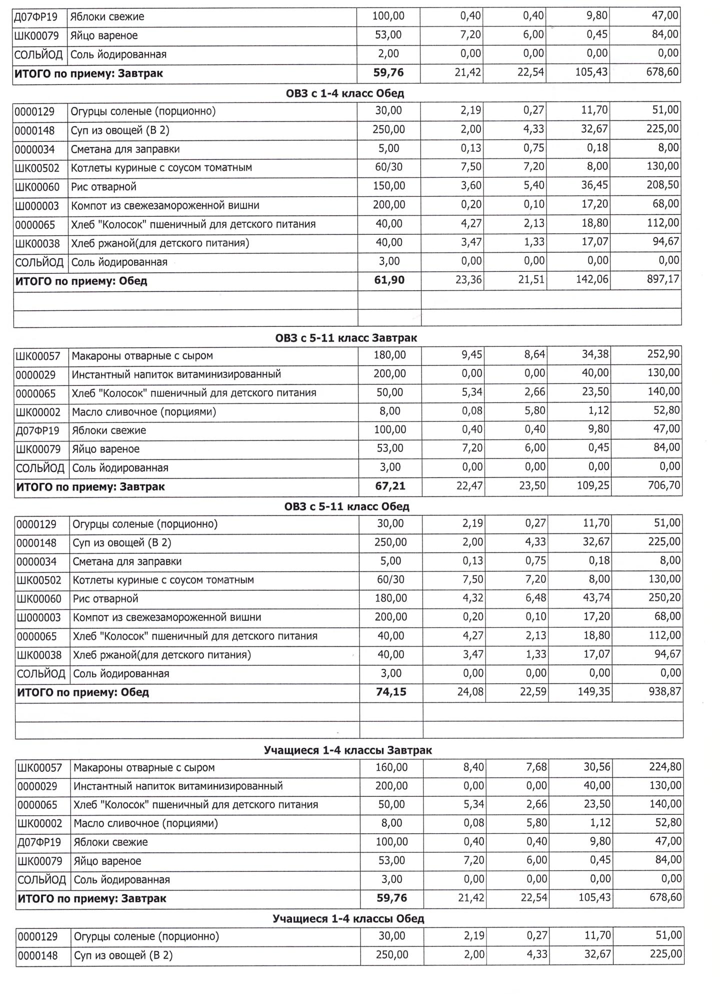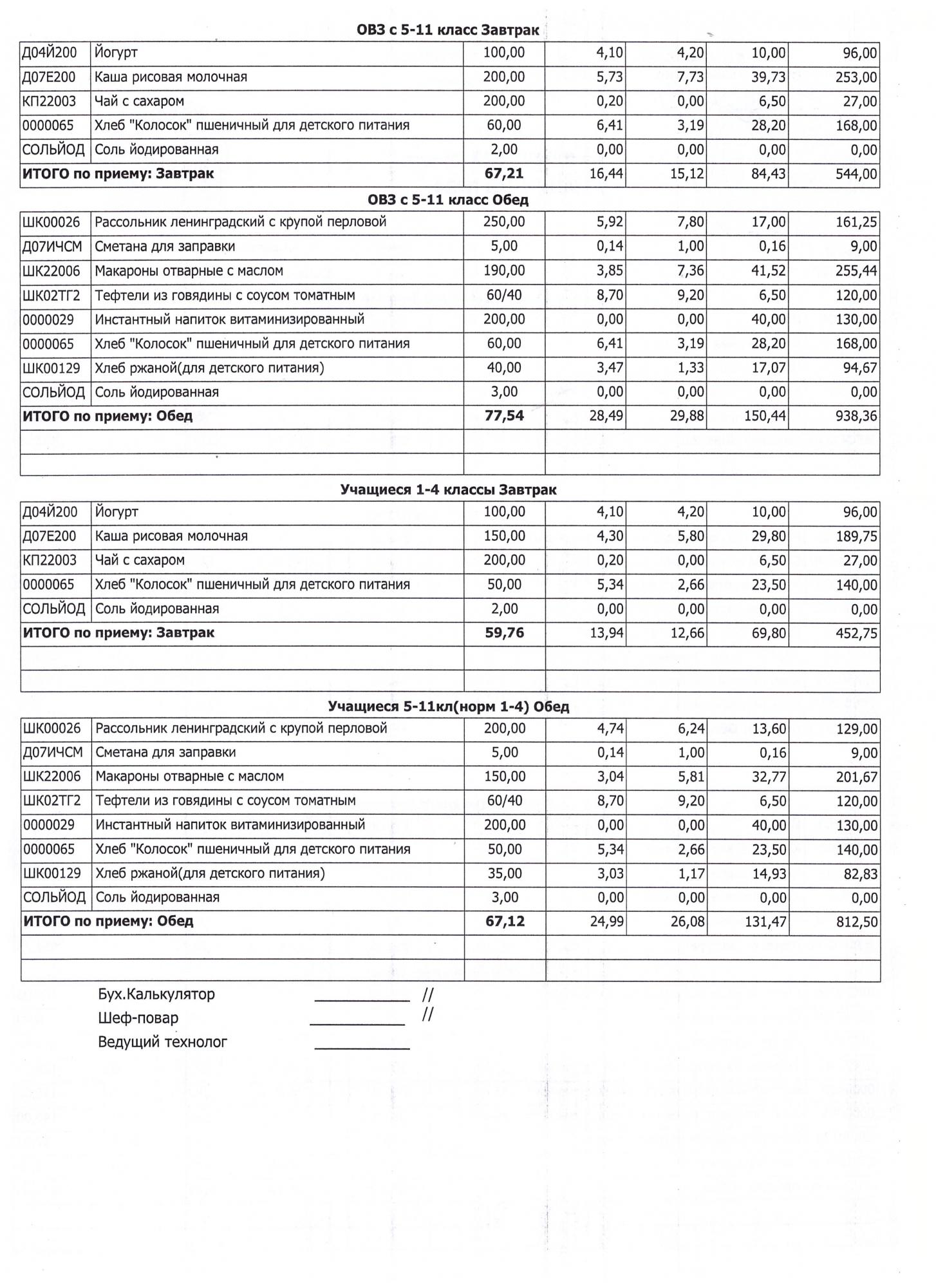 (Завтрак 1-4 классы)