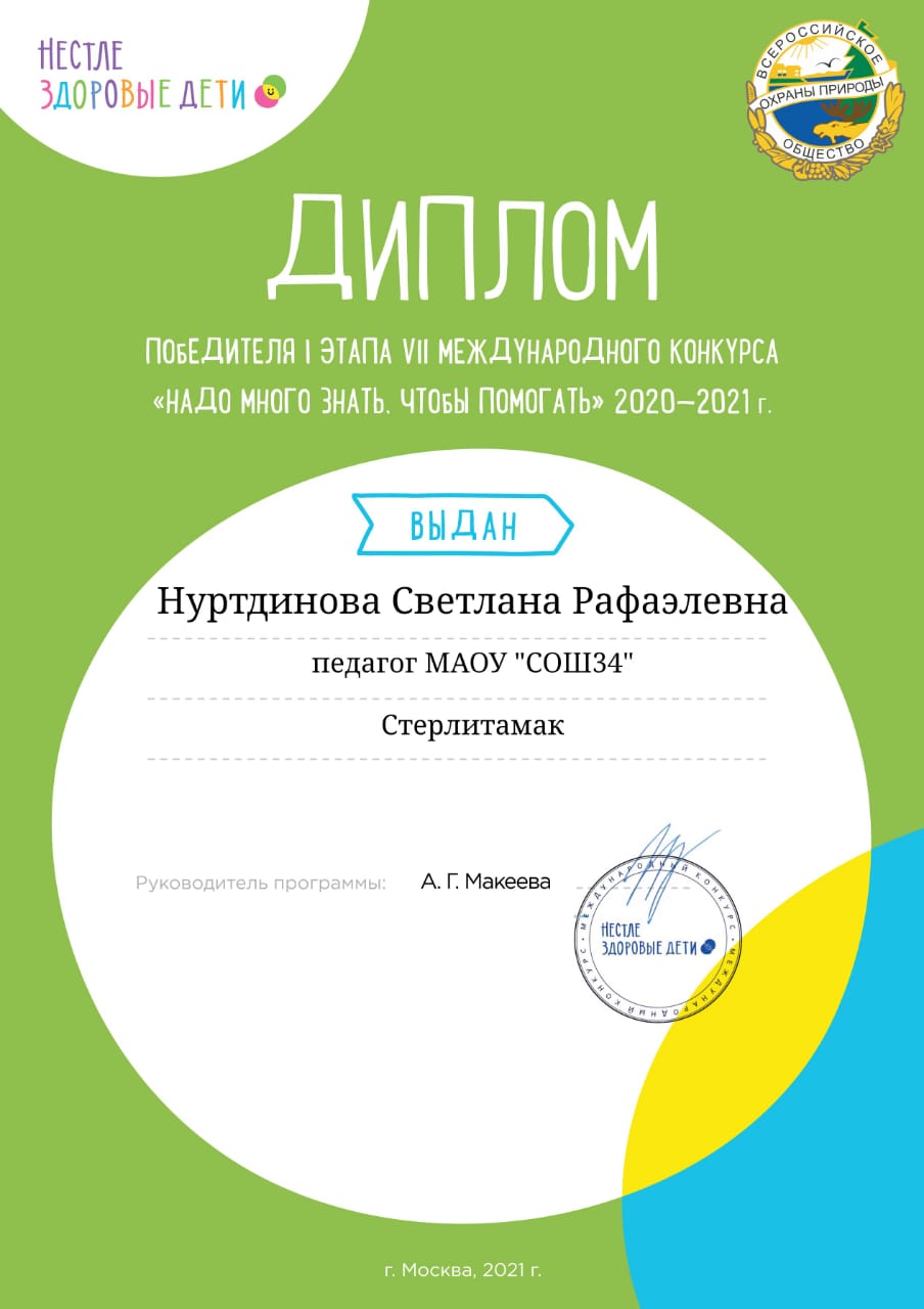 МАОУ "СОШ № 34" использует методические материалы программы "Разговор о правильном питании", разработанные специалистами Института возрастной физиологии Российской академии наук, а также принимает участие в конкурсах.