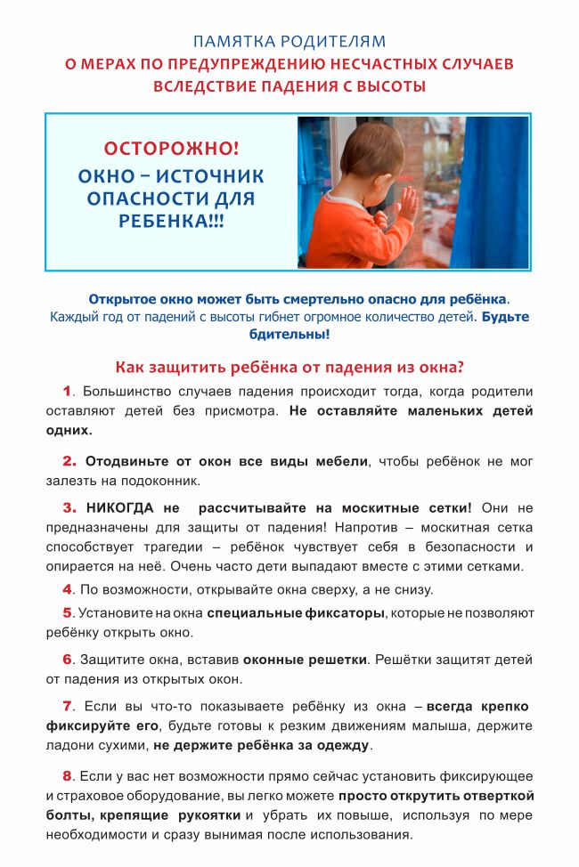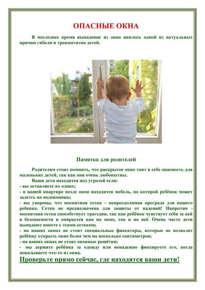 1 ПРАВИЛО: Не оставлять окно открытым, поскольку достаточно отвлечься на секунду, которая может стать последним мгновением в жизни ребенка или искалечить ее навсегда.